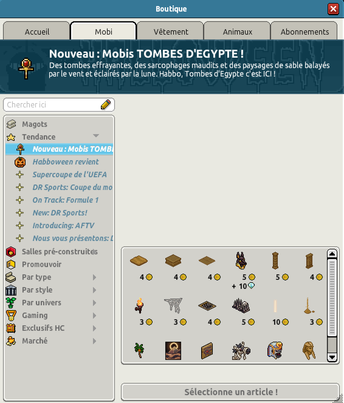 Pour accompagner Habboween et créer vos propres situations effrayantes, mais divines, une nouvelle gamme à fait son apparition : Gamme Tombes d’Égypte !