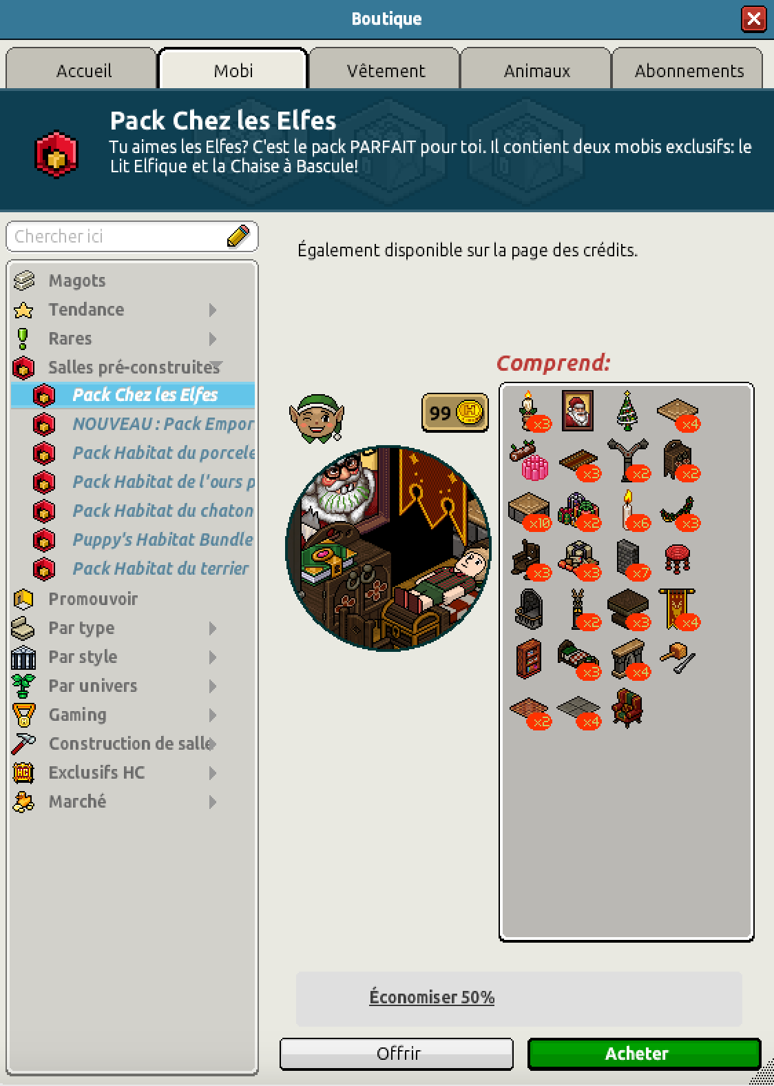 Nous avons également la sortie du pack Chez les Elfes pour un montant de 99 crédits
