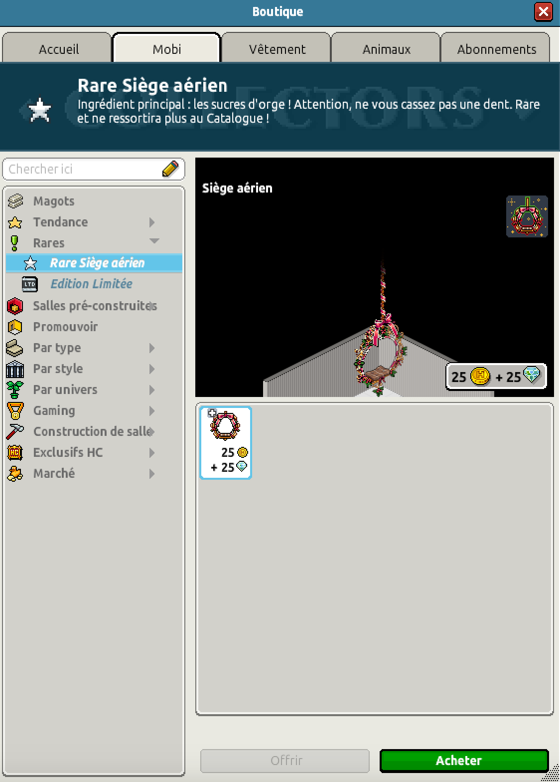 Nous avons la sortie du rare Siège aérien pour un montant de 25 crédits et 25 diamants