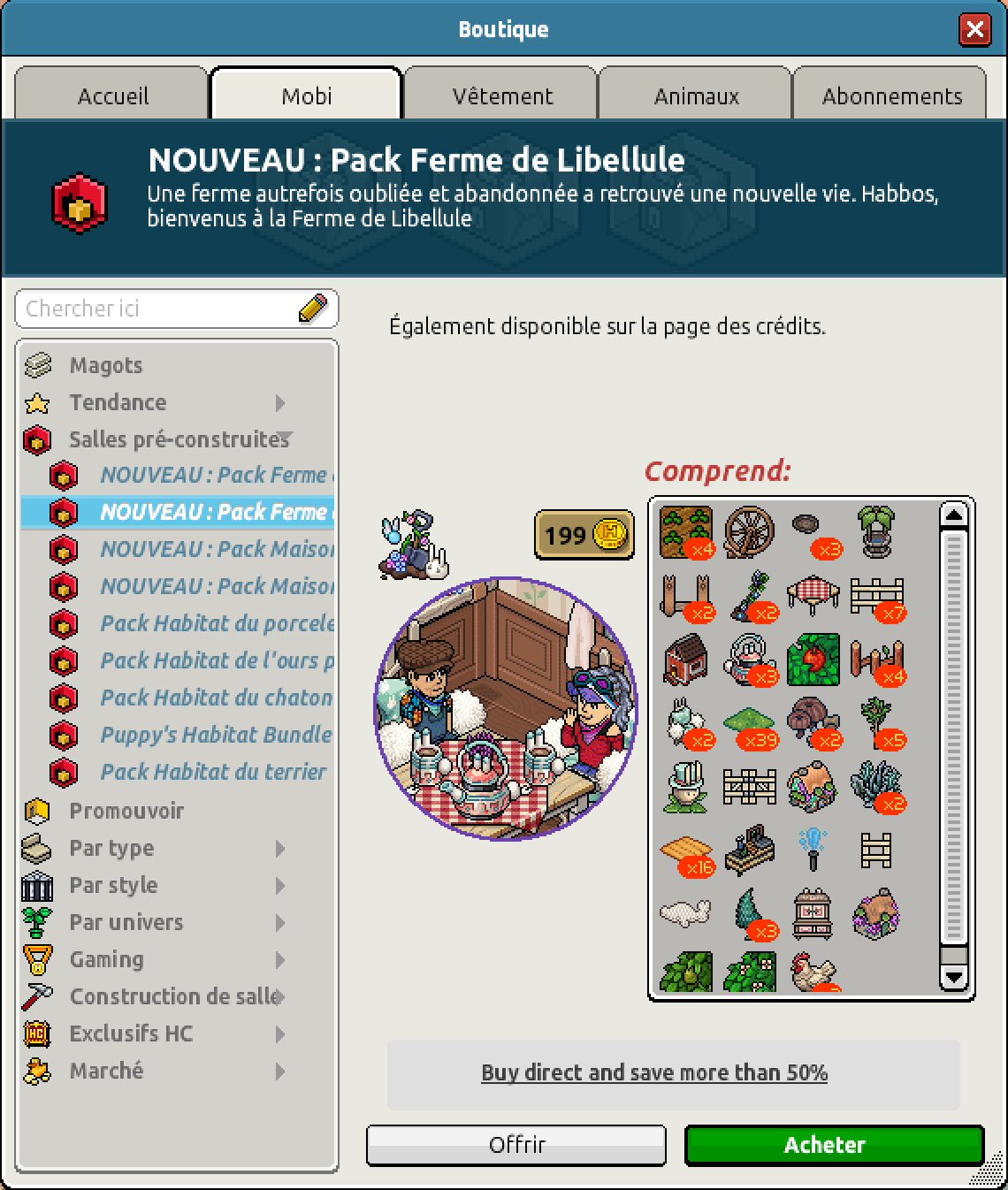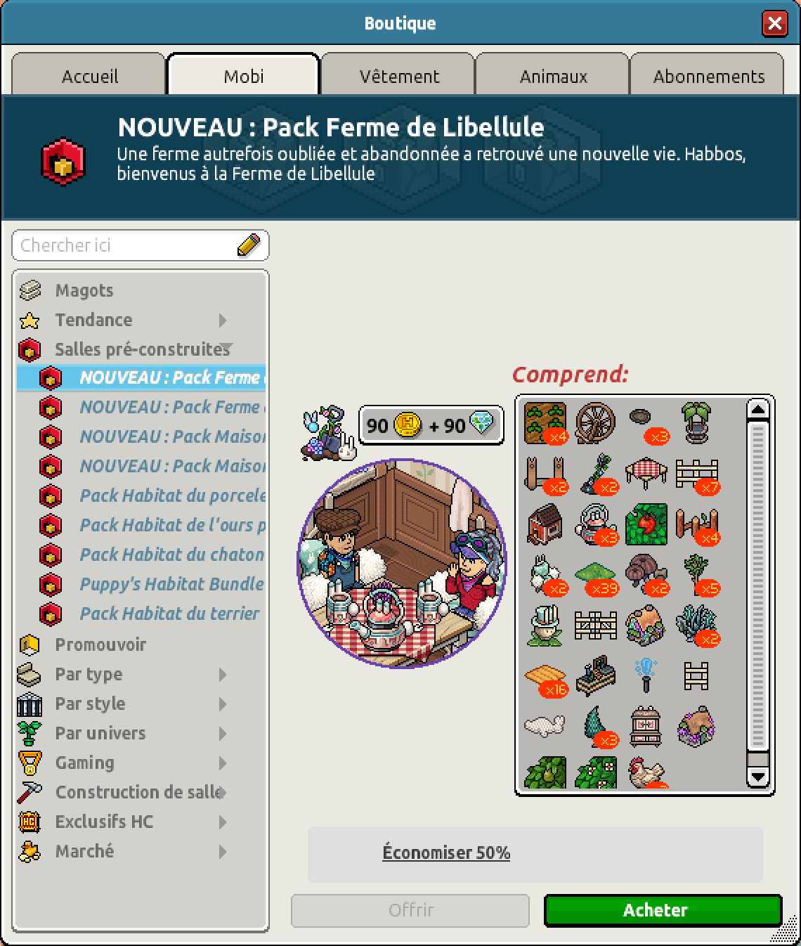 Le deuxième pack de la semaine appelé Ferme de Libellule est disponible avec deux prix différents lui aussi, 90 crédits et 90 diamants ou 199 crédits !
