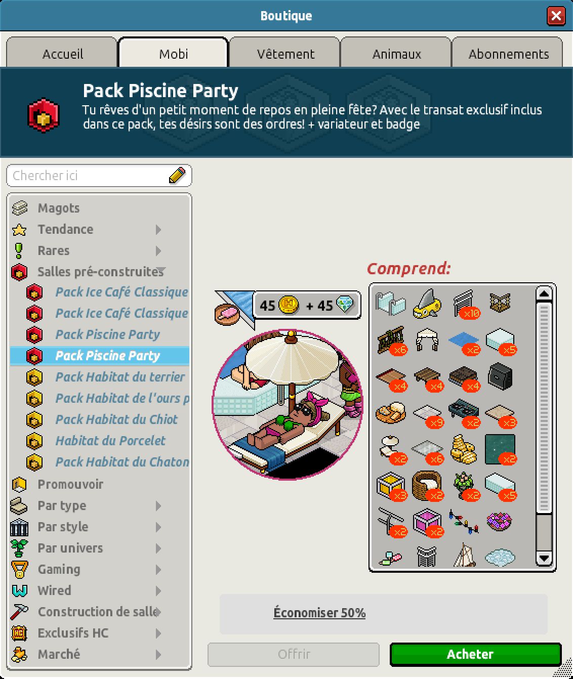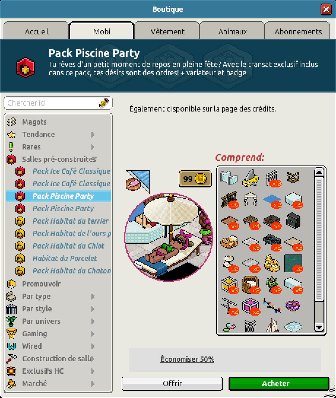 Un pack a aussi fait son apparition, le pack Fête à la piscine était disponible avec deux prix, 45 crédits et 45 diamants ou 99 crédits.
