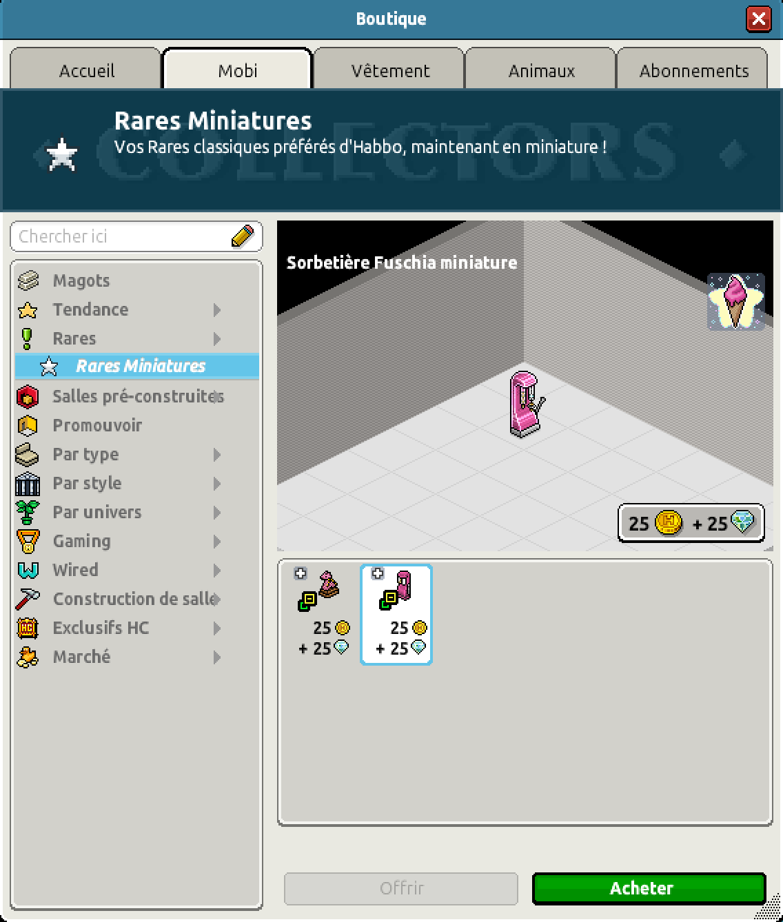 Un deuxième rare a aussi fait son apparition, le rare Sorbetière Fuchsia Miniature était disponible au prix de, 25 crédits et 25 diamants.