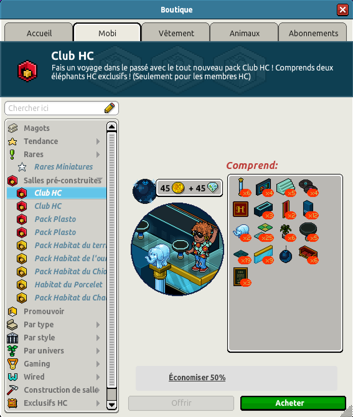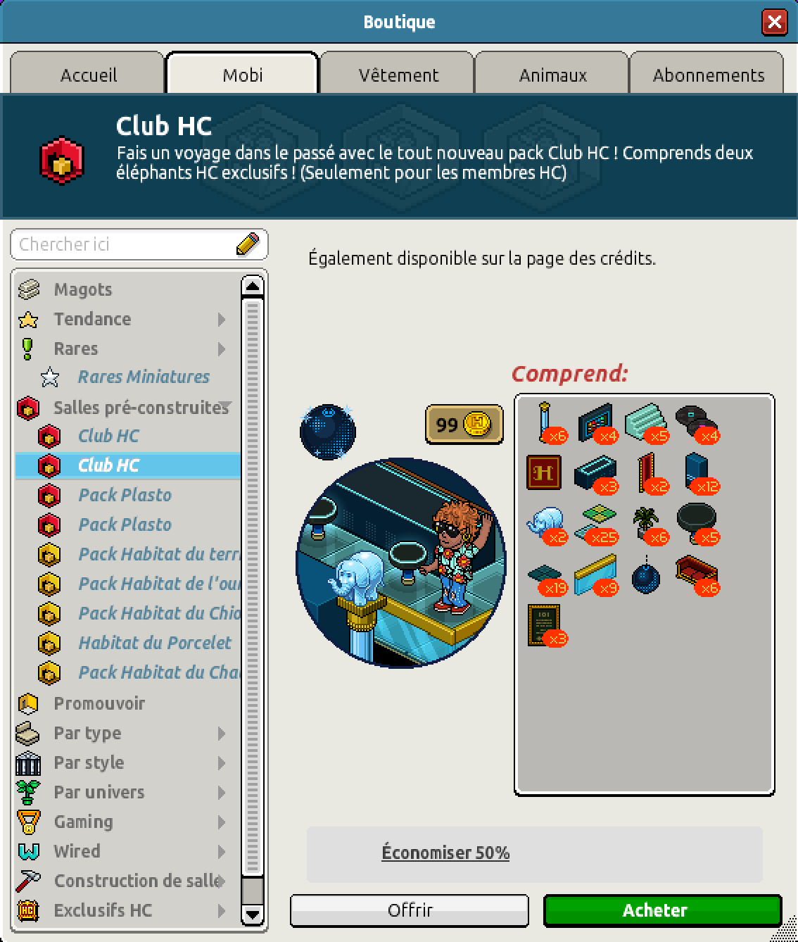 Un second pack a aussi fait son apparition, celui-ci étant réservé aux membres du Habbo Club le pack Club HC était disponible avec deux prix différents, 45 crédits et 45 diamants ou 99 crédits.