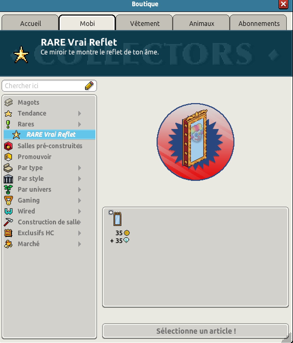 Nous avons la sortie du rare Vrai Reflet pour un montant de 35 crédits et 35 diamants