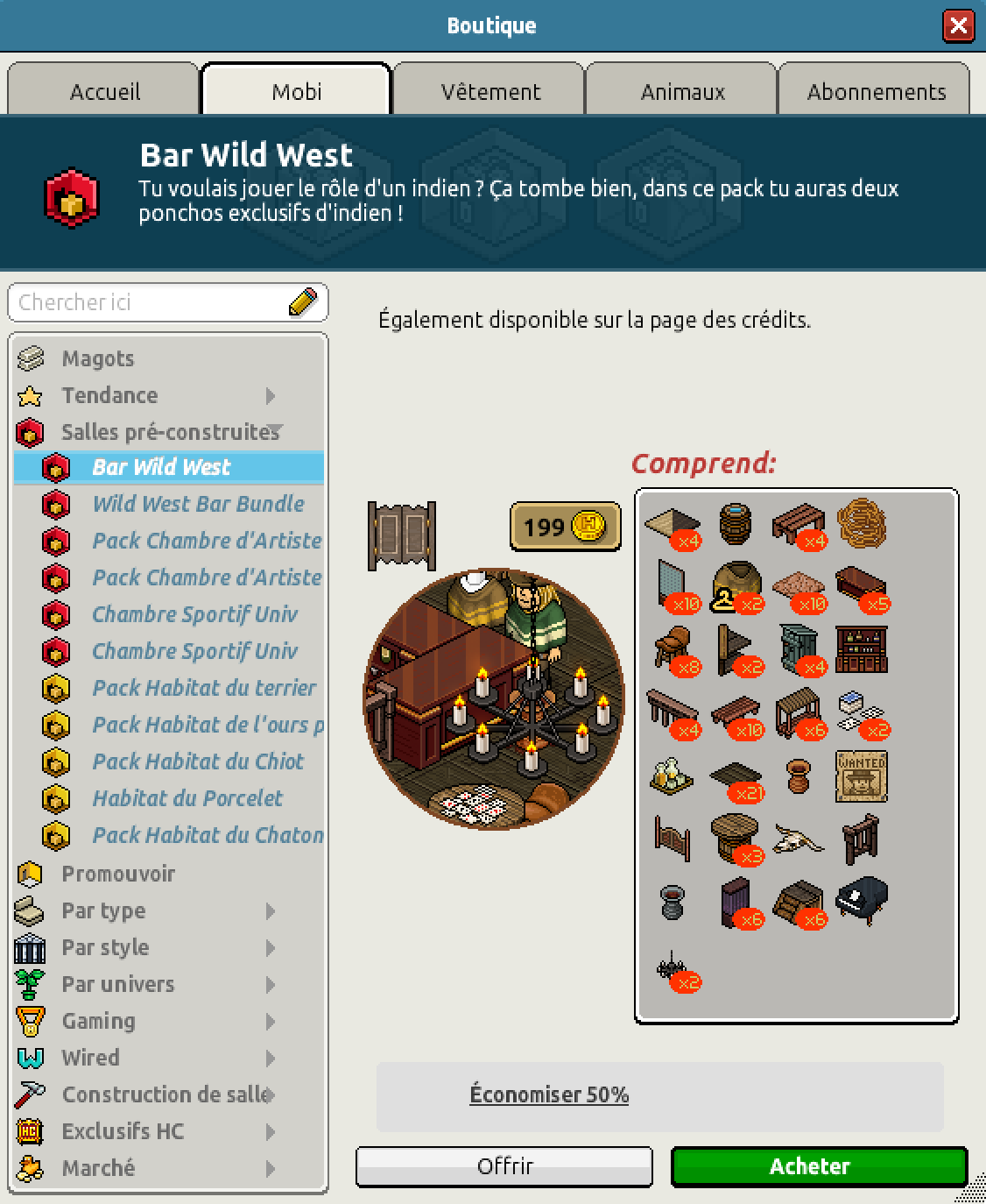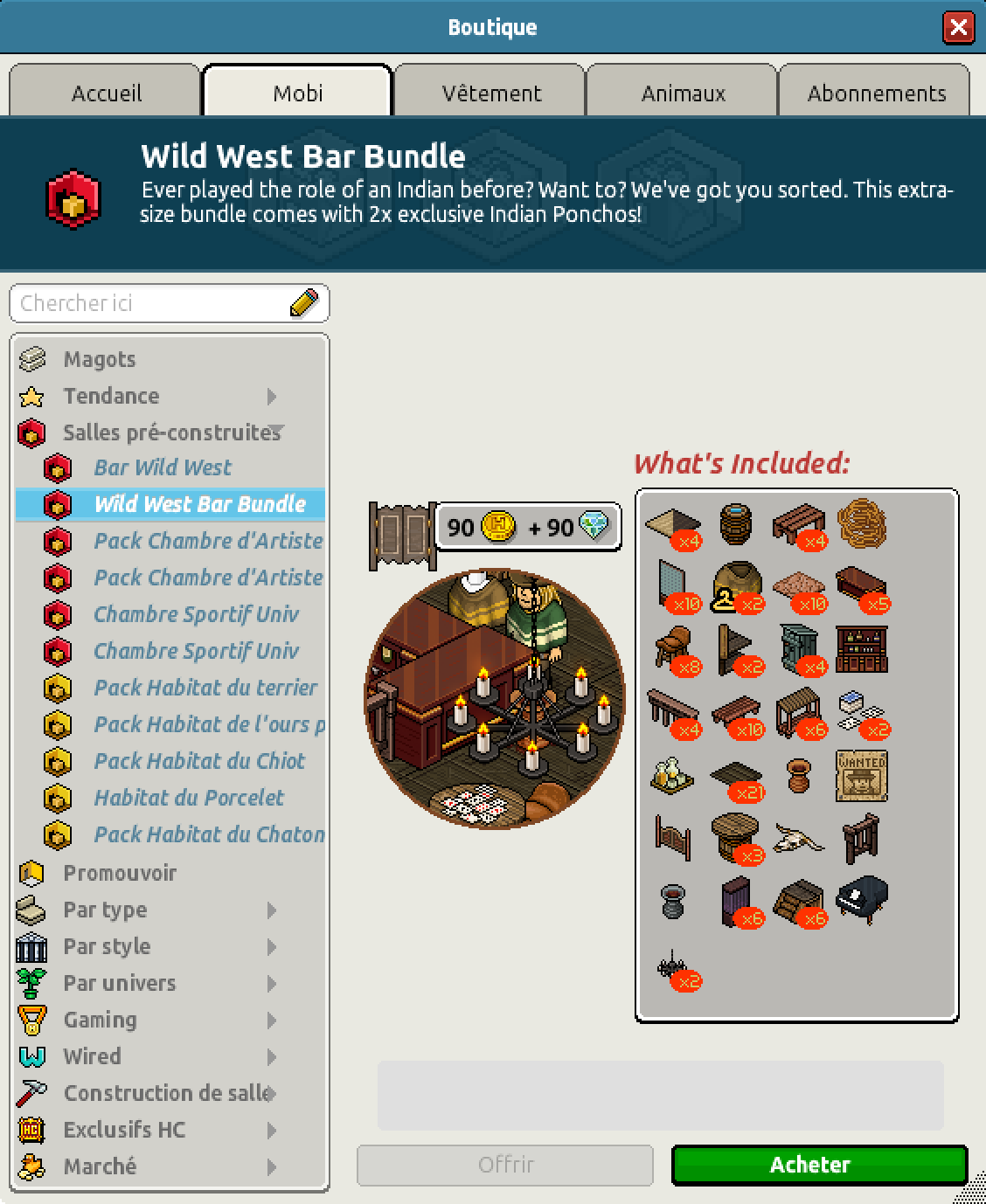 Nous avons également la sortie du pack Bar Wild West pour un montant de 199 crédits ou pour 90 crédits et 90 diamants