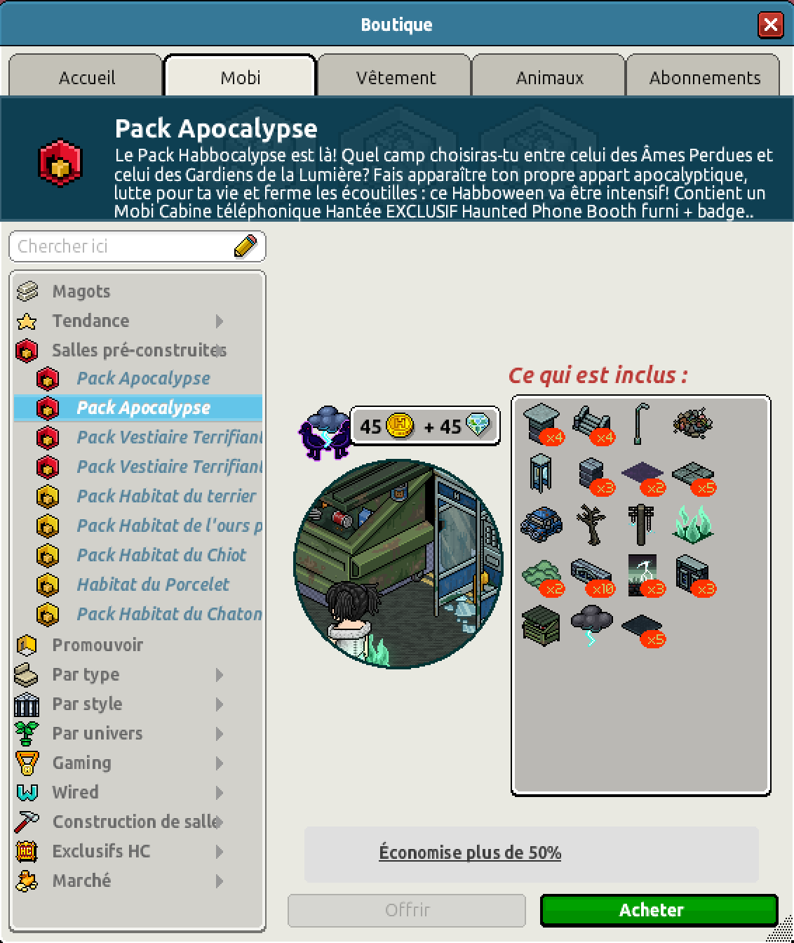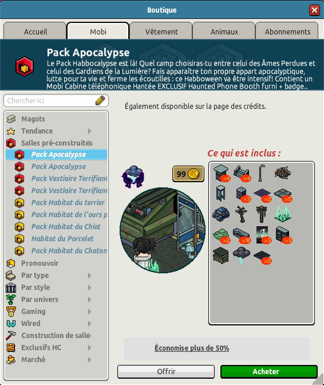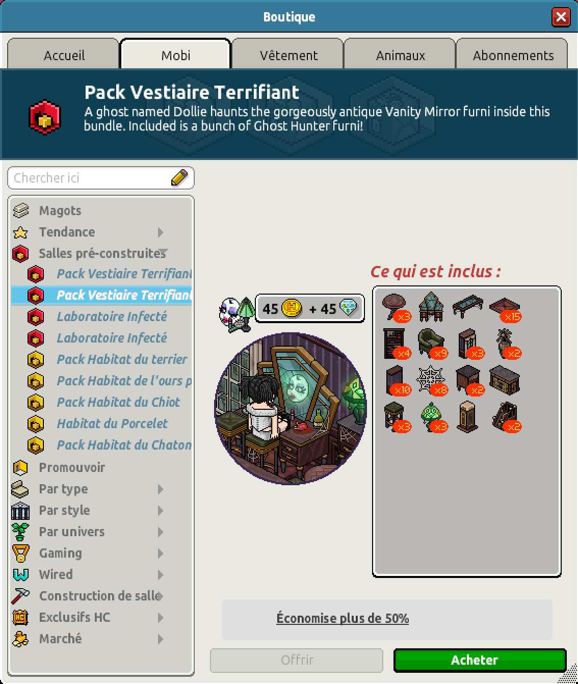 Un second pack a aussi fait son apparition, le pack Vestiaire Terrifiant était disponible avec deux prix différents, 45 crédits et 45 diamants ou 99 crédits.