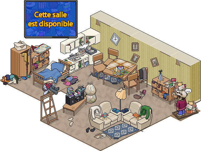Le lundi 05 janvier, un nouveau pack est arrivé au catalogue d’Habbo. Il s’agit du pack Chambre en Désordre, et c’est le moins qu’on puisse dire… Disponible pour 99