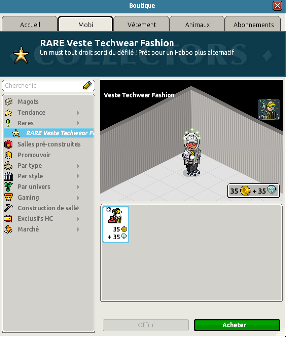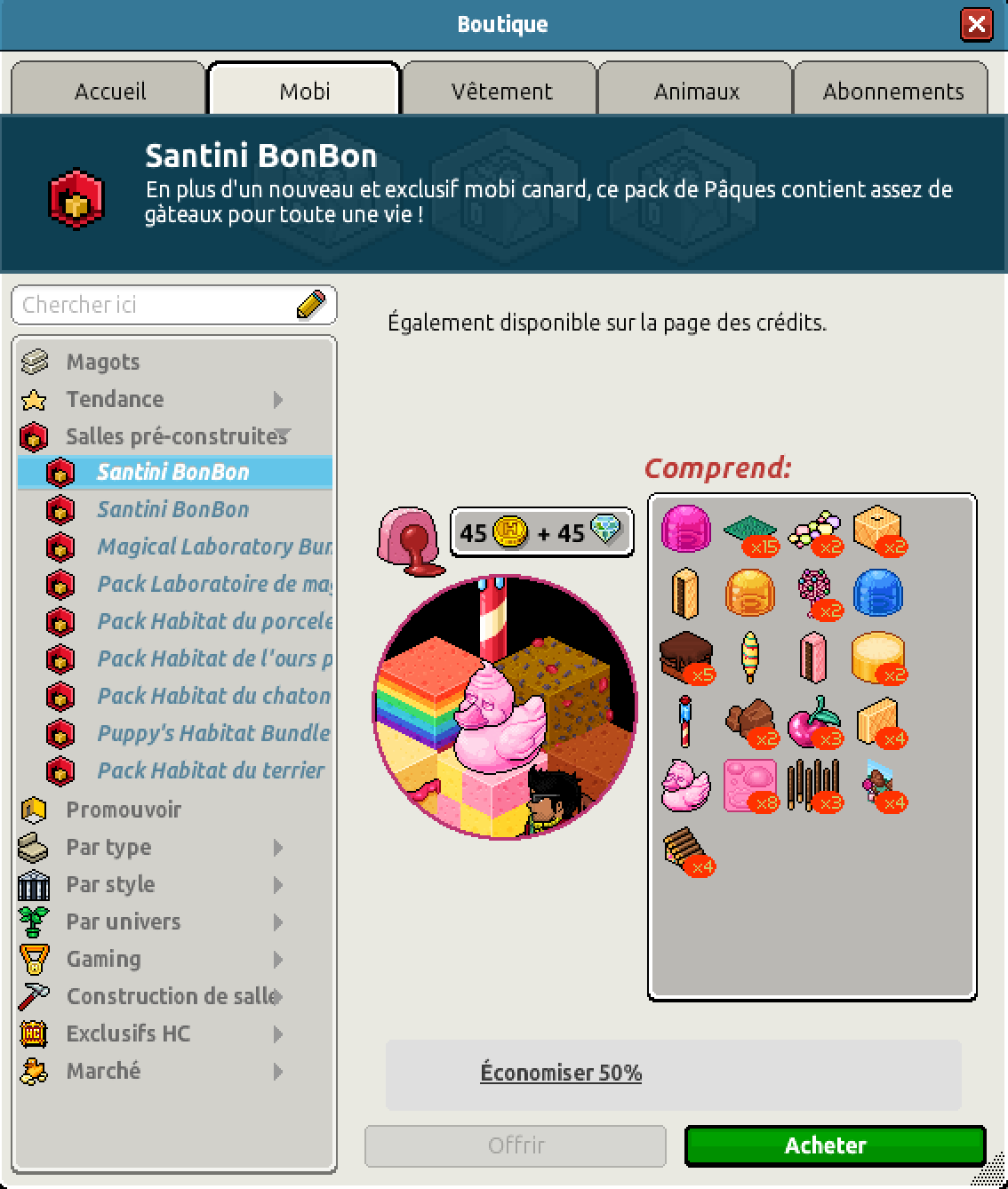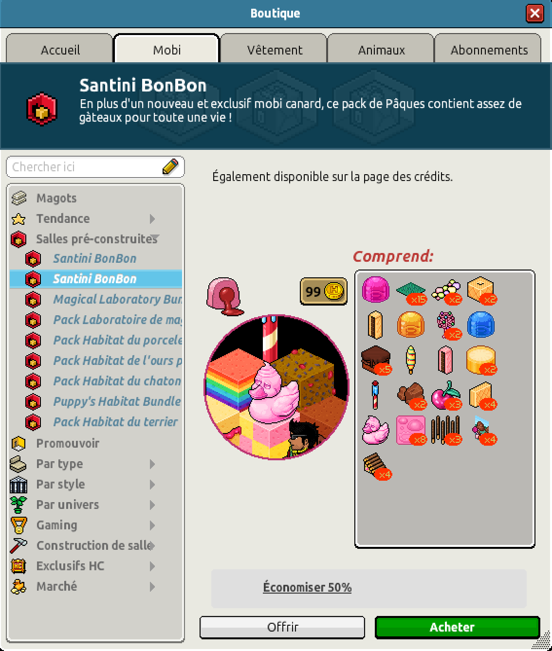 Côté catalogue ; nous avons pu observer la sortie du rare Parasol Vert Miniature au prix de 25 crédits et 25 diamants !